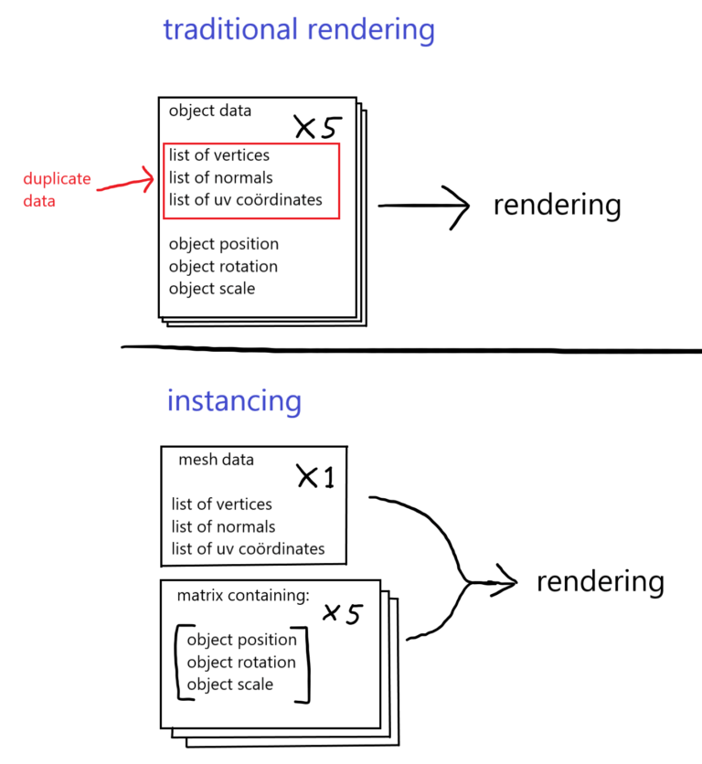 Rendering also needed to be handled efficiently. By assuming the mesh data of each particle is the same we can only store the position data.